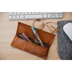 Magnifique trousse.Ne quitte plus mon sac.Sent fort le cuir mais j’aime ça.