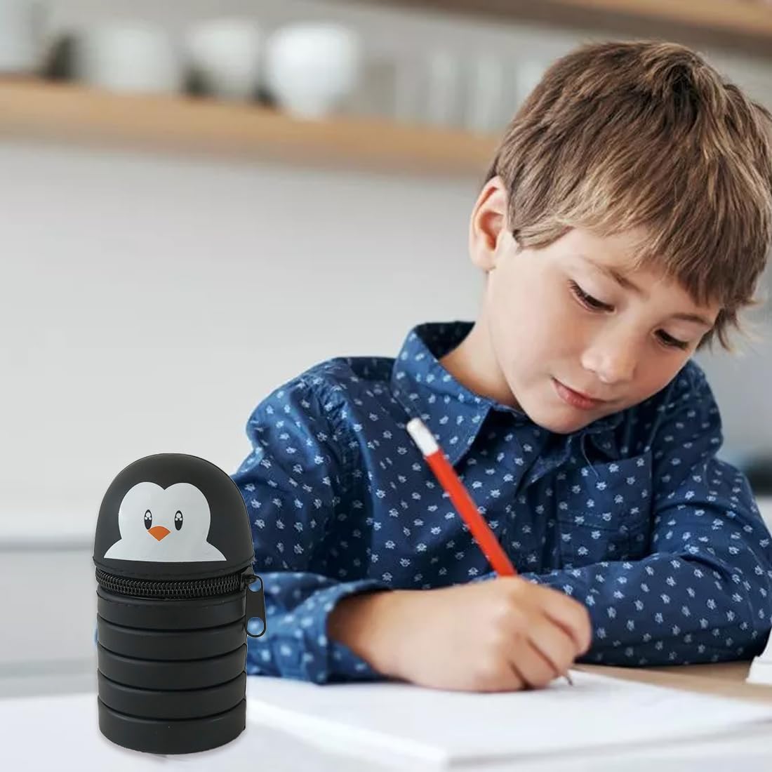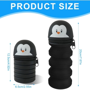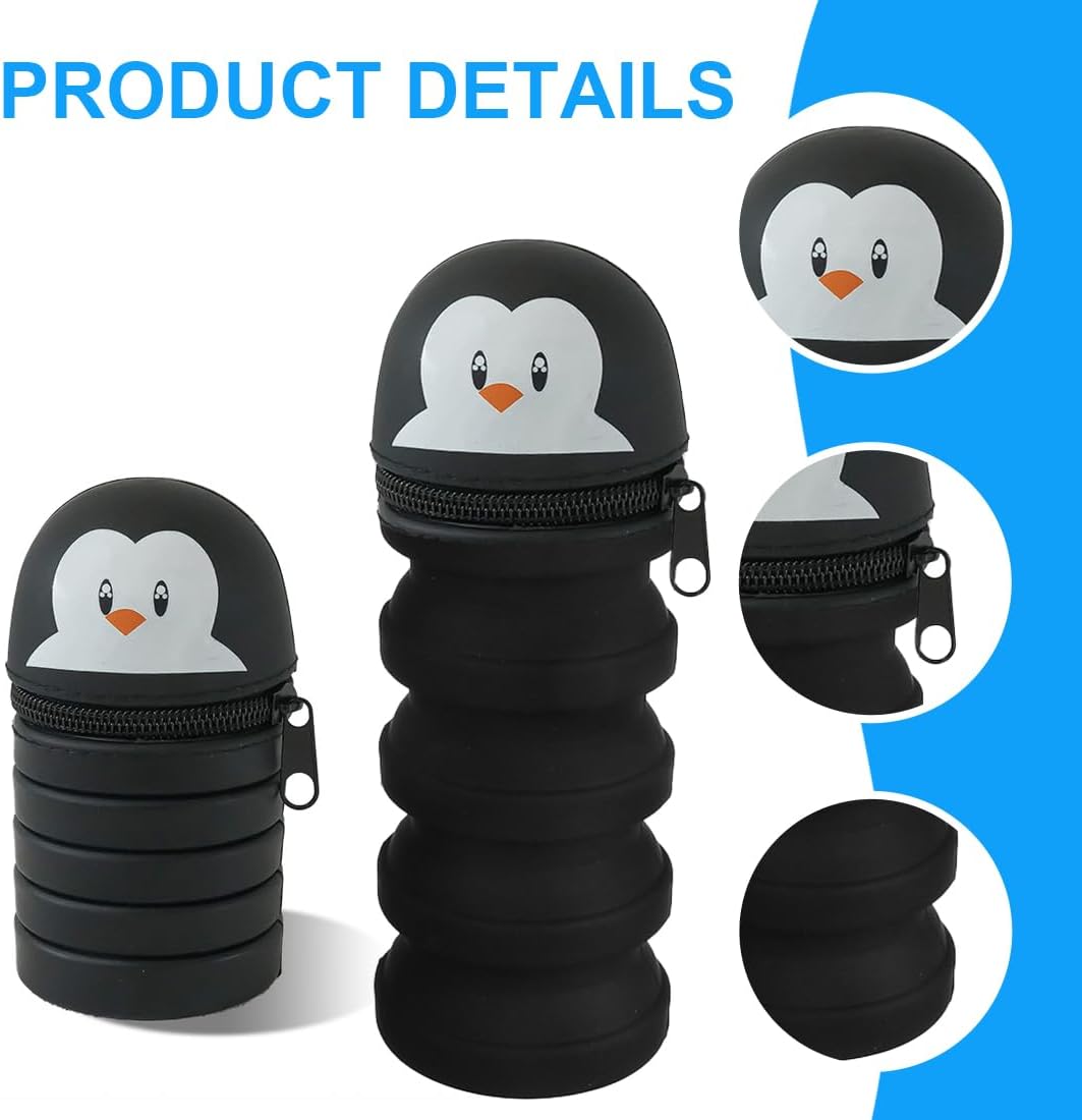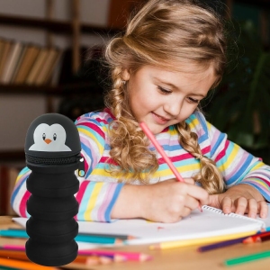 La trousse 2 en 1 en silicone souple sur le thème du pingouin est un accessoire scolaire innovant qui allie praticité et design ludique. Sa polyvalence, sa qualité de fabrication et son esthétique en font un choix judicieux pour ceux qui recherchent une solution de rangement fonctionnelle et attrayante.