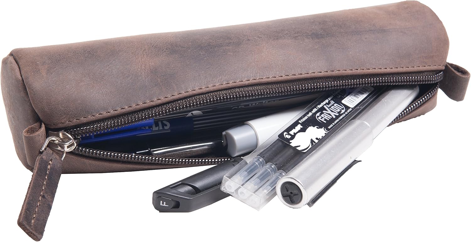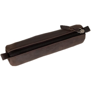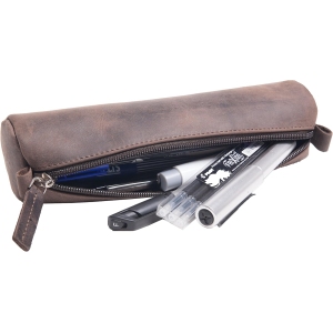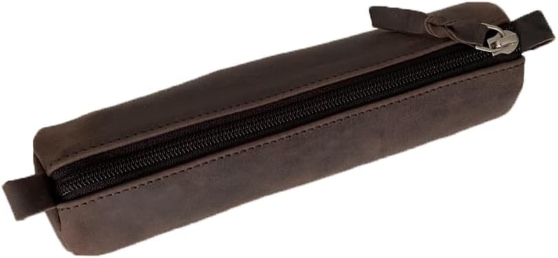 Trousse élégante et solide en cuir marron. Parfaite pour ranger stylos, accessoires ou petits objets du quotidien.