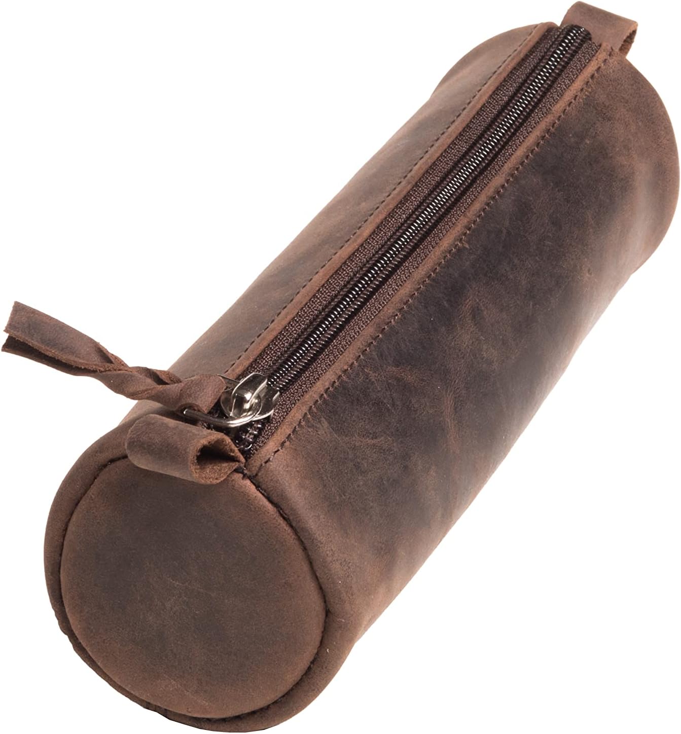 La trousse arbore une coupe ronde classique, idéale pour ceux qui recherchent à la fois du style et de l’utilité. Son cuir véritable présente un aspect vintage, qui se patine merveilleusement au fil du temps, rendant chaque pièce unique. Le cuir huilé, à la fois résistant et doux au toucher, confère une note de sophistication à cet accessoire du quotidien.