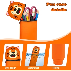 Ce modèle de trousse, avec ses dimensions de 18,5 x 6,5 cm, est spécialement pensé pour être léger et facilement transportable. Fabriquée en silicone souple, elle est non seulement résistante mais aussi très facile à nettoyer. Son mécanisme rétractable permet de la transformer en pot à crayons sur pied, apportant une touche d’originalité à votre bureau. Imaginée dans des couleurs macaron, son motif animal kawaii fait d’elle un objet de mode à la fois pratique et tendance.