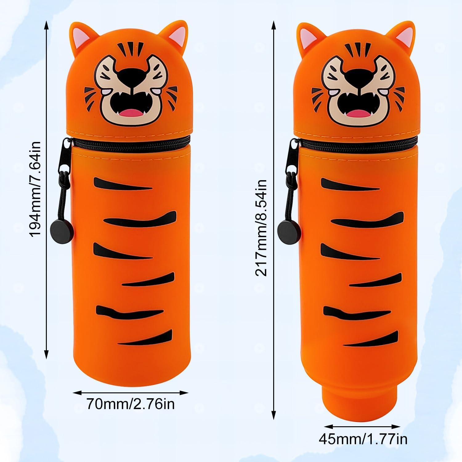 Das leuchtende Orange des Federmäppchens fällt sofort ins Auge und das Tiger-Design ist ein echter Hingucker. Das Material fühlt sich hochwertig an, ist flexibel und leicht zu reinigen. Praktisch, robust und einfach mal etwas Besonderes – absolute Kaufempfehlung!