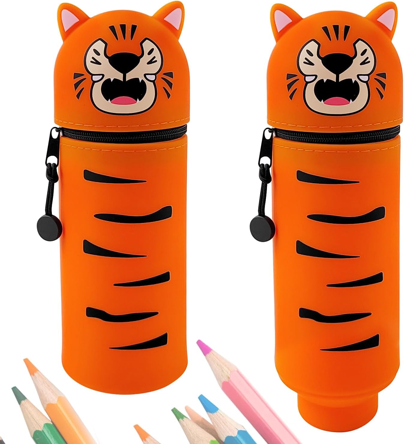 Cette trousse 2 en 1 en silicone souple Kawaii est un accessoire incontournable pour tous les jeunes créateurs et élèves. Avec son design coloré et amusant, elle ne se contente pas d’être pratique, elle embellit aussi le bureau de vos enfants. Fabriquée avec un silicone indéchirable, cette trousse se démarque par sa durabilité et sa capacité à résister aux aléas du quotidien. Son joli coloris orange apporte une touche ludique qui séduira aussi bien les enfants que les adultes.